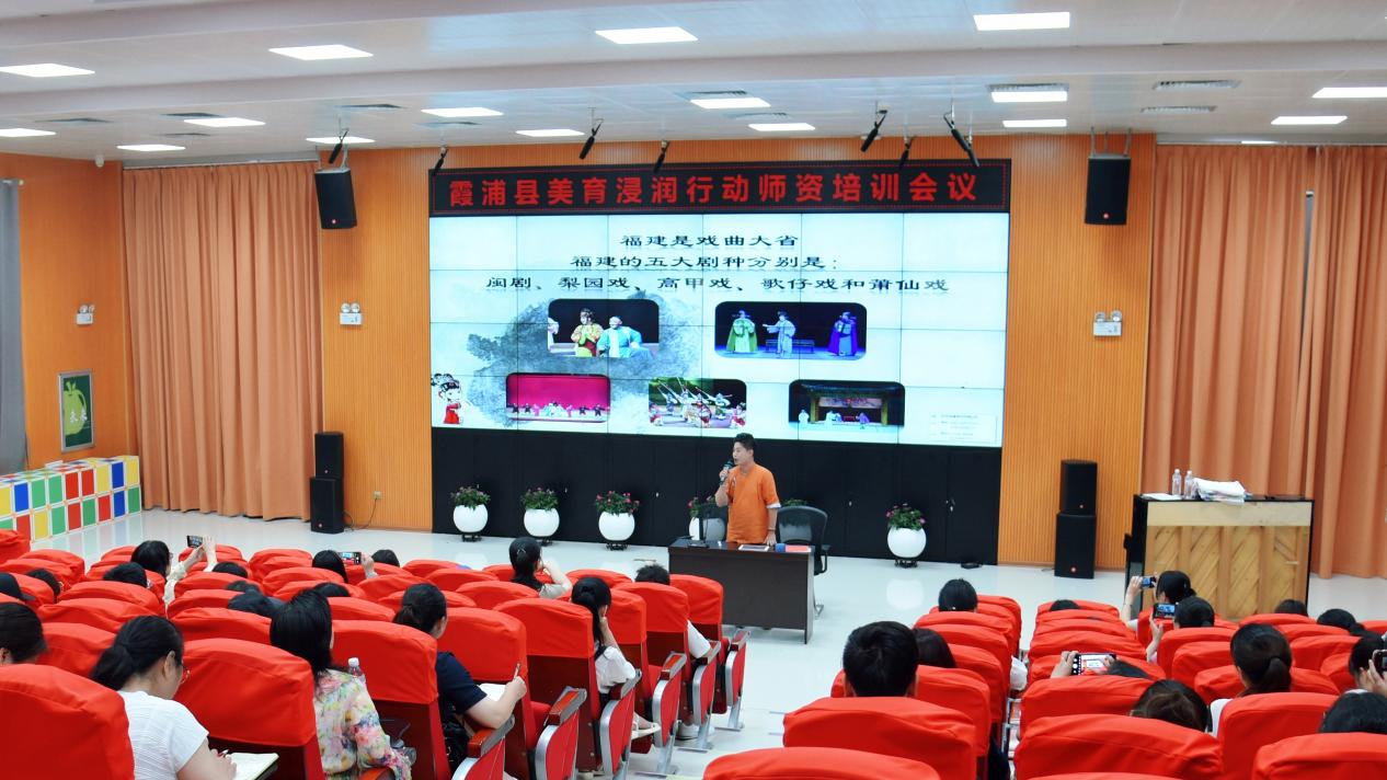 艺术学院“三下乡”团队联合霞浦县教育局在霞浦第四小学为全县美育教师举办三场美育师资培训讲座。艺术学院院长徐青开展《童声合唱的排练与实践》主题讲座、我校特邀专家福建省音乐家协会副主席蒋舟开展《少儿歌曲创作与演唱的时代特征》主题讲座、我院青年教师、非遗传承人林特开展《戏韵永流芳·美育润心田——中小学戏曲社团的建设》主题讲座,师资培训活动不仅为霞浦县全县美育教师提供了美育专业现场学习的机会更为霞浦县的美育工作发展提供了新的思路和见解。