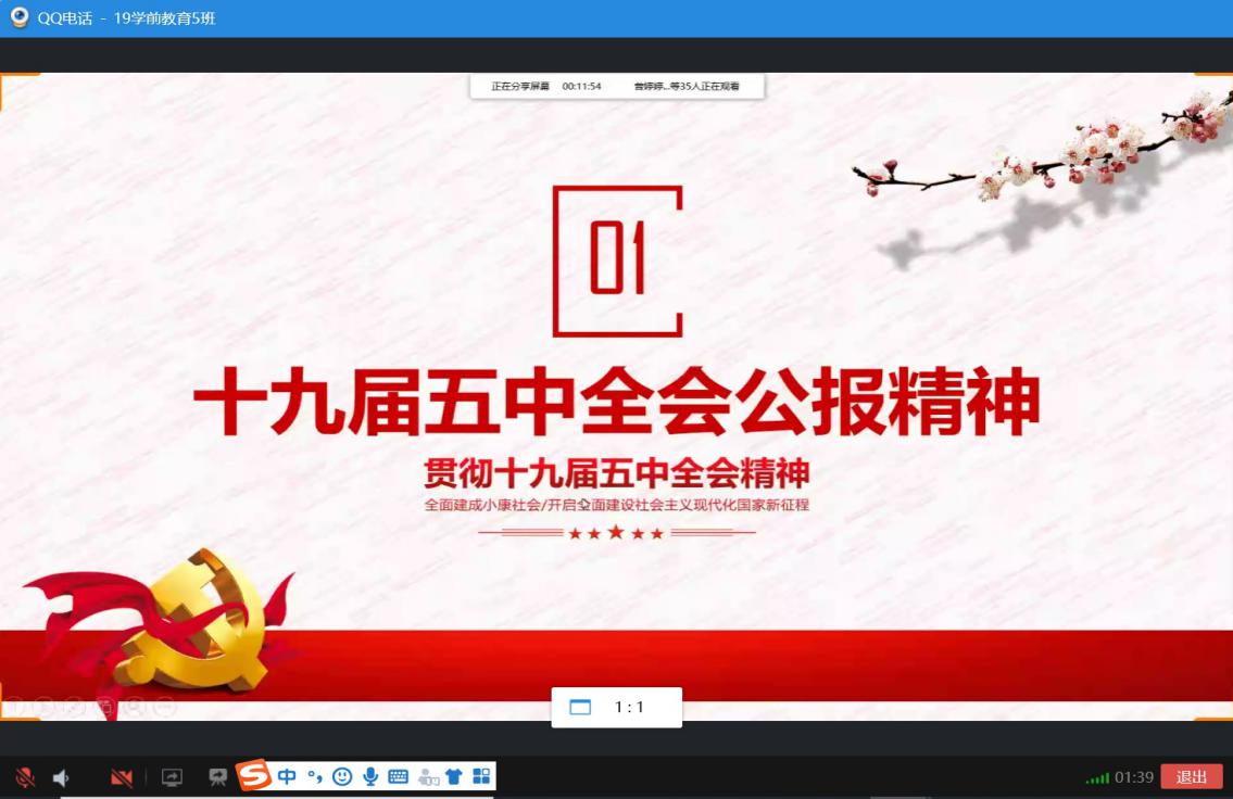为深入学习贯彻党的十九届五中全会精神,我校各班级团支部积极落实工作部署,切实将广大团干部及青年团员的思想和行动统一到全会精神上来,激励我校师生为全面建设社会主义现代化国家新胜利贡献青春力量。12月26日,校团委组织部召开“学习贯彻党的十九届五中全会精神”线上主题团日活动。