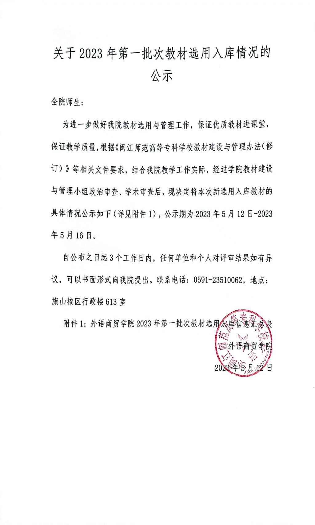 附件1:外语商贸学院2023年第一批次教材选用入库信息汇总表