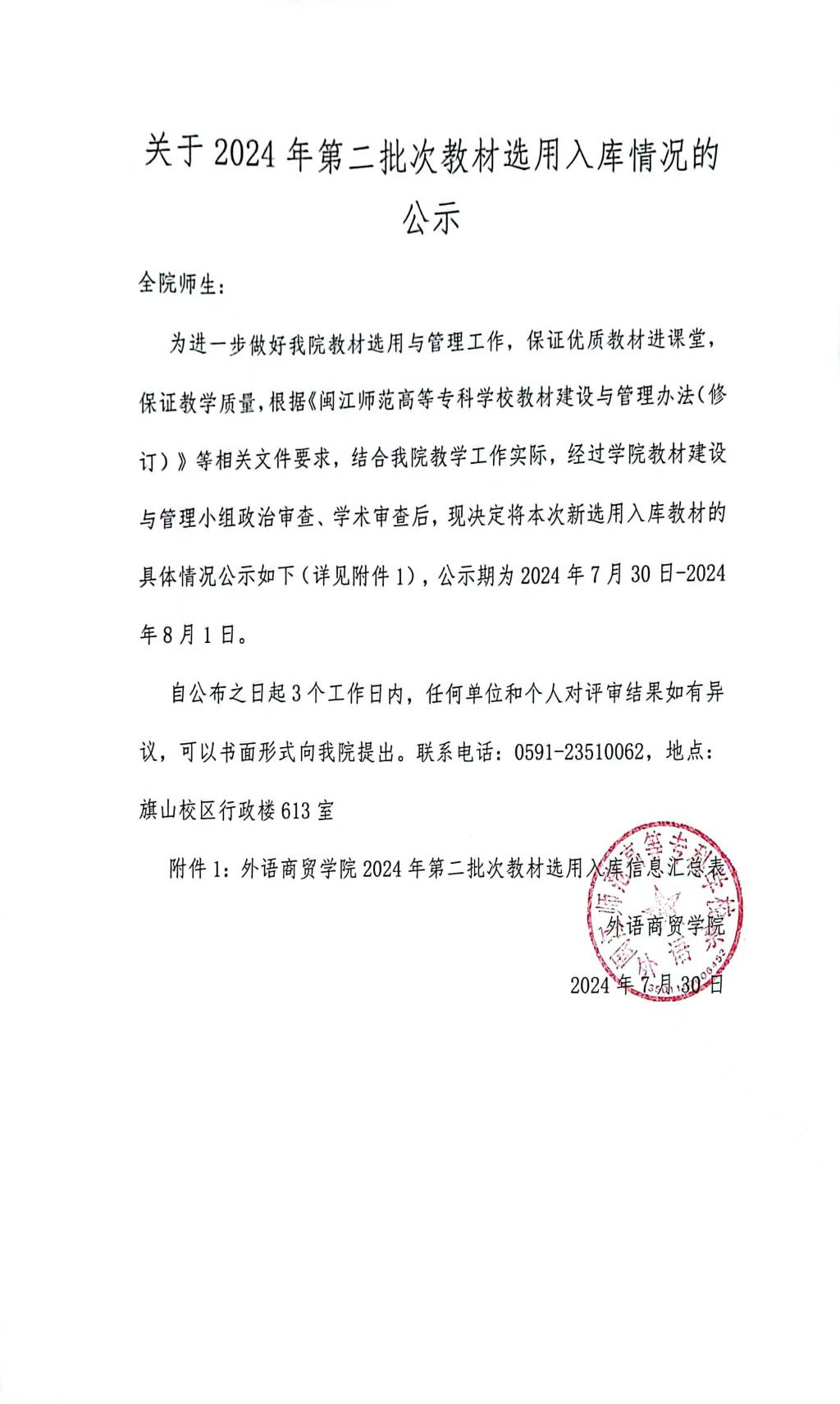 附件1:外语商贸学院2024年第二批次教材选用入库信息汇总表