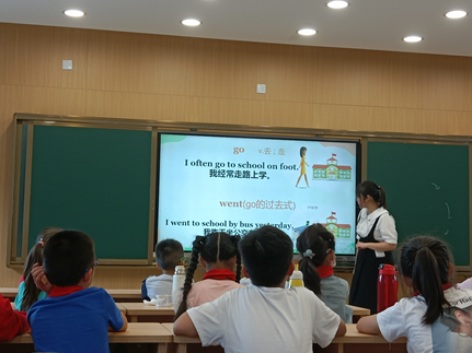 本次授课的创新在于引入过去式的语法教学,歌谣中包含了过去式的用法,小杨老师对过去式用法,以及歌谣中对应的动词过去形式进行阐释,使学生在唱歌谣有一个对过去时空的体验,加深对歌谣的理解。