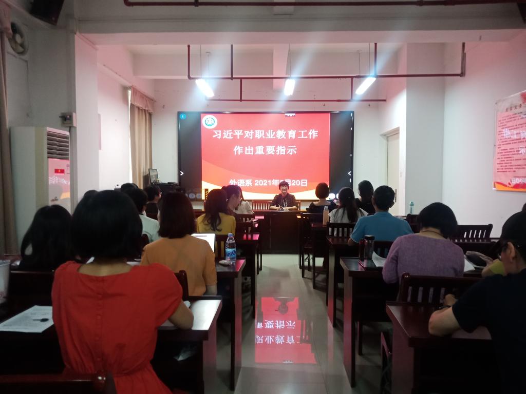 会议的第二环节,何主任带领全系老师学习习近平总书记对职业教育工作作出的重要指示。何主任强调,在党和国家的支持下,职业教育前途广阔,我们要认真贯彻党中央、国务院决策部署,瞄准技术变革和产业优化升级的方向,推进产教融合、校企合作,为职业教育的发展献力献策。