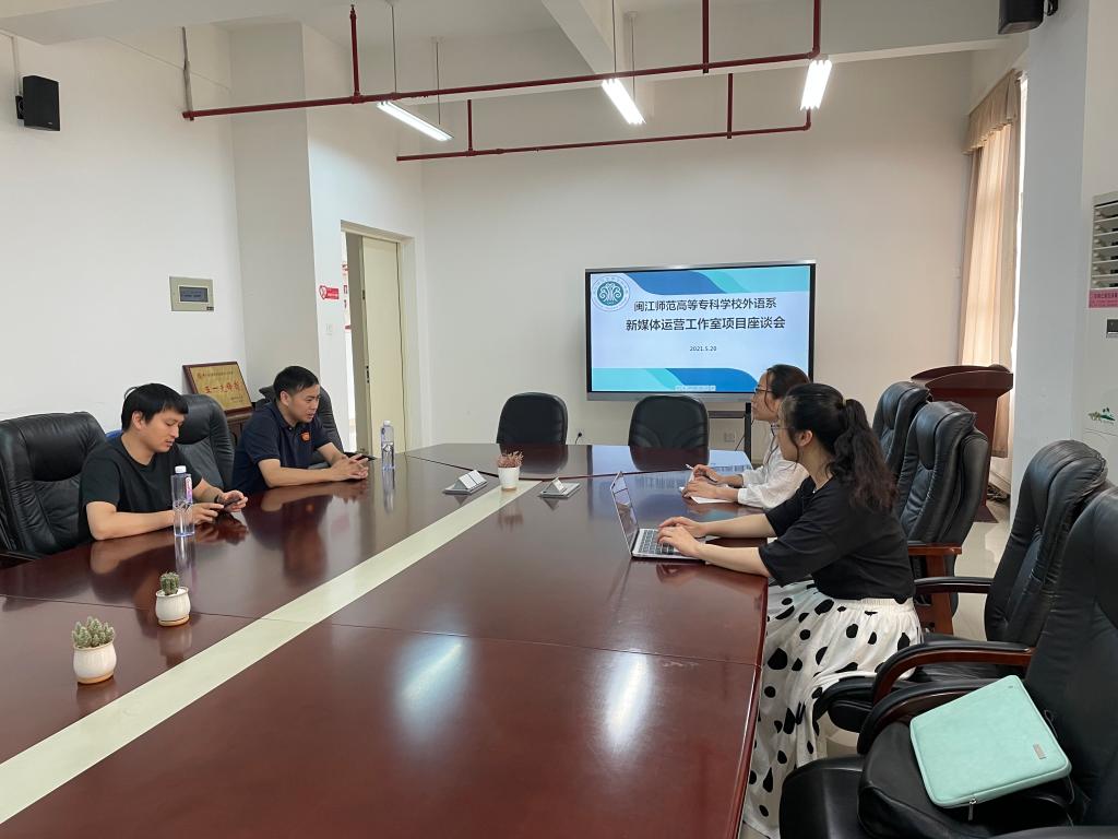 继5月13日福建海纳蓝天教育科技有限公司与我系就校企合作工作室事宜进行初步洽谈之后,双方对于合作成果都持有乐观的态度。5月20日,许良远总经理携新媒体运营事业部负责人墨一先生,再次来到闽江师专,与外语系敲定合作细节。外语系副主任卢燕红和商贸教研室主任陈海燕老师接待了访客。
