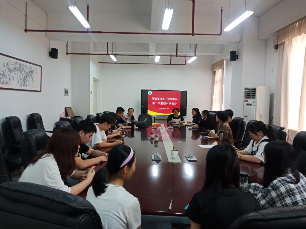 2021年5月19日下午,外语系何少娴主任在旗山校区第三会议室主持召开了外语系2020-2021第二学期期中评教座谈会,教师代表和学生代表参会。