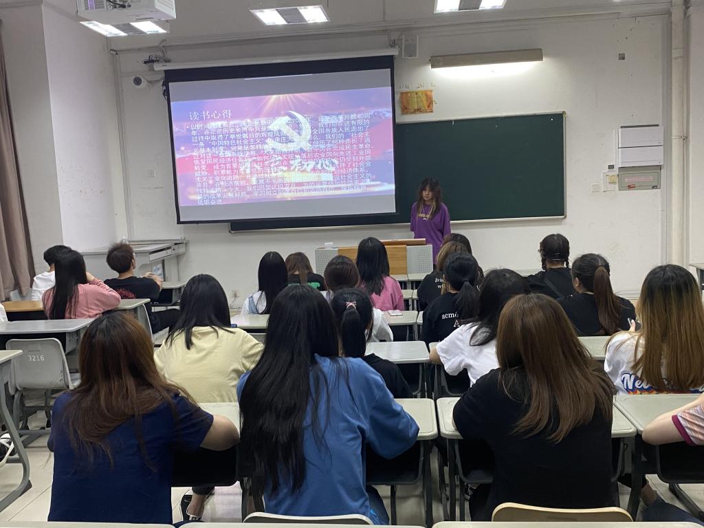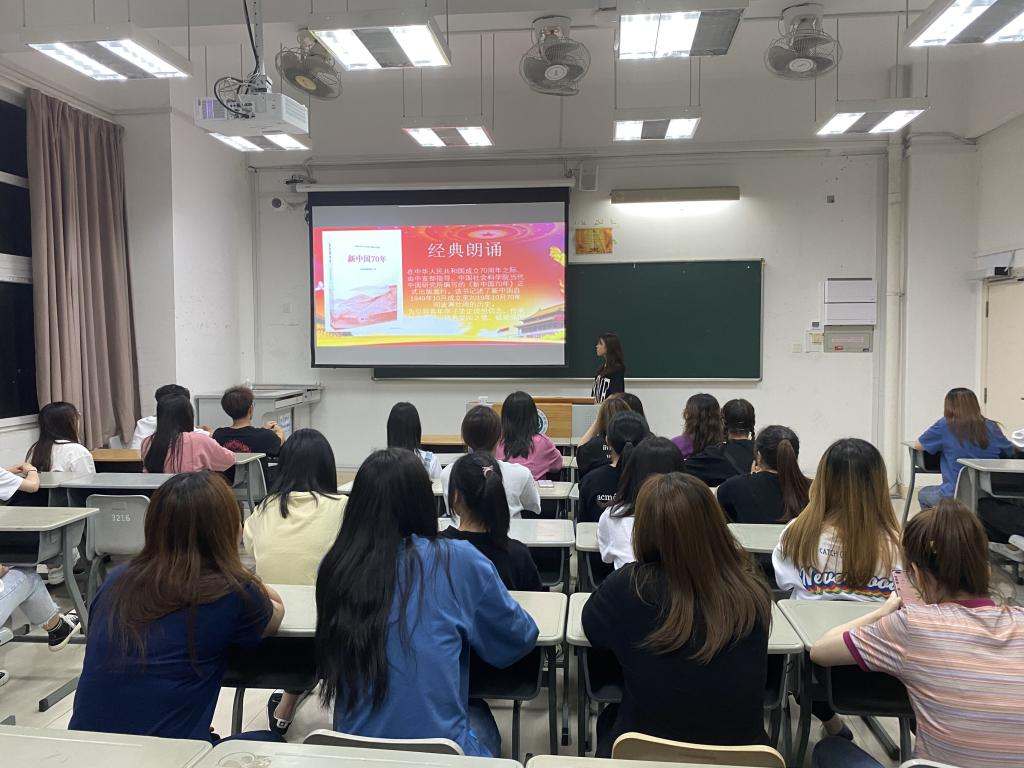 活动伊始,各班学习委员带领同学们学习并朗诵《新中国70年》,重温了一些红色经典,回顾了从1949年新中国成立到2019年间中国共产党领导全国各族人民进行社会主义革命、建设、改革的磅礴历程和中华民族从站起来、富起来再到强起来的伟大飞跃。紧接着,同学们先后上台发言,紧密结合平时的生活以及学习,从不同角度畅谈了学习《新中国70年》的心得体会。同学们一致认为,该书把习近平总书记关于党史新中国史的重要论述精神贯穿于全部内容中,充分体现了以习近平同志为核心的党中央关于党史新中国史的最新认识。最后,大家都纷纷表示,作为一名学生,要铭记历史、珍惜当下、憧憬未来!