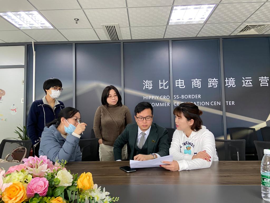本次交流是围绕海比跨境电商产业学院建设等方面深入开展。在课程共建方面,双方通过探讨,选出2门专业课程,进行“企业师傅+学校教师”分工协作的模块化教学模式,由校企双方共同制定课程标准,确定教学内容、学时安排和考核方式等等,在知识储备上尽量缩短与岗位需求的距离,帮助学生在实习时能够很快融入到企业。