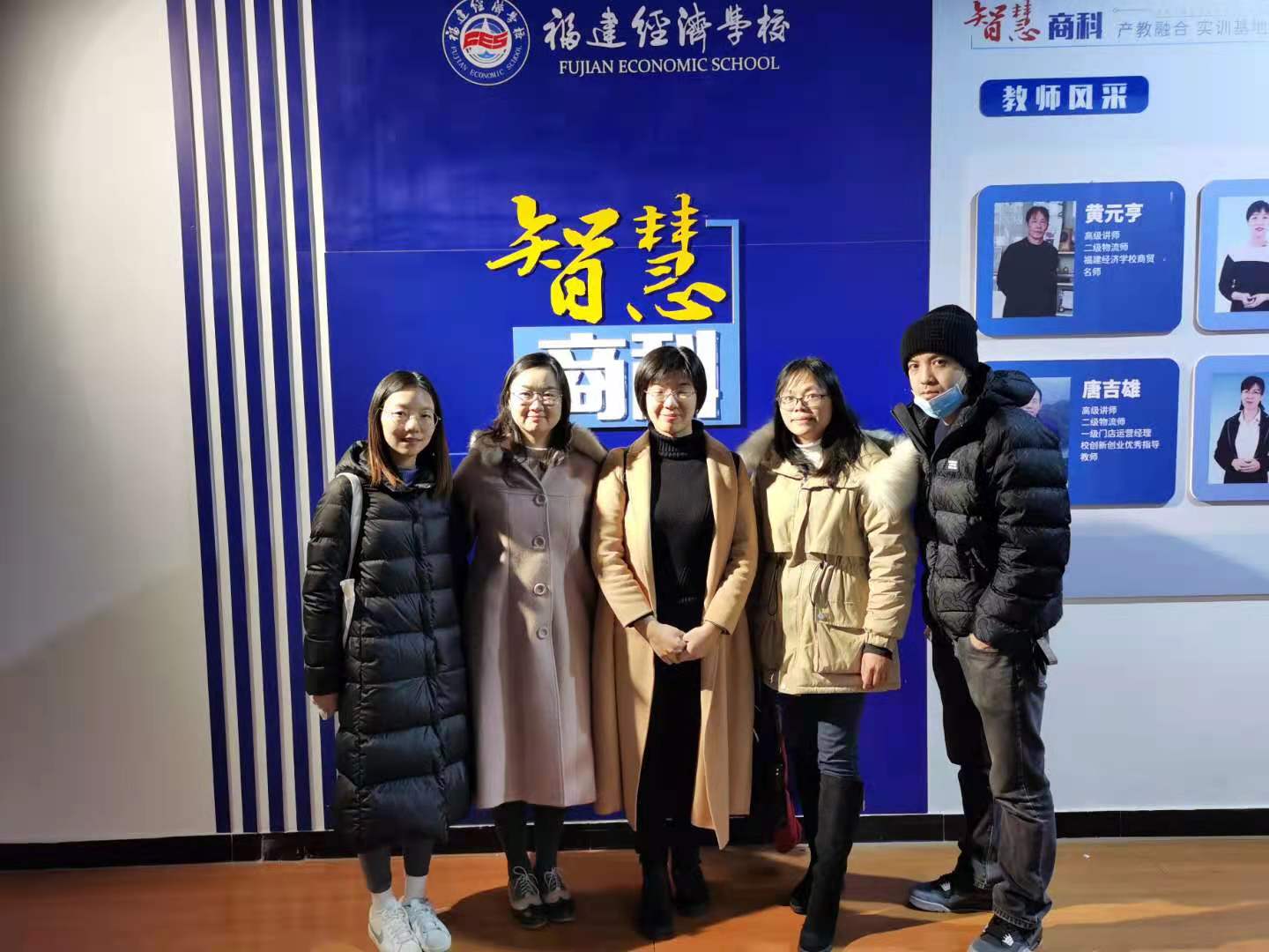 2021年1月5日,为了更好的进行专业建设、丰富各类竞赛参赛和备赛经验,我系商贸教研室陈海燕、肖怡文、郑堤姑、黄夏昕四名老师赴福建经济学校交流学习。福建经济学校电商教研室主任张端星老师热情地接待了我校一行人员。