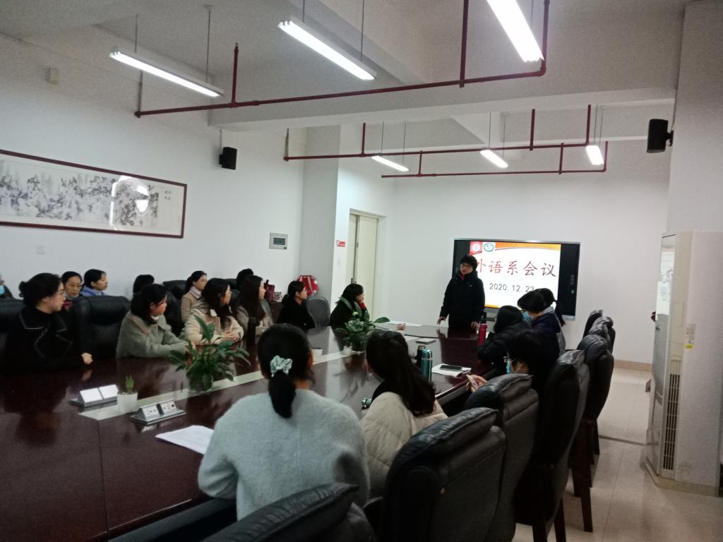2020年12月23日下午14:30,外语系何少娴主任在旗山校区第三会议室主持召开了系部会议,外语系全体教职工参加。