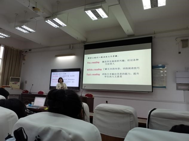 讲座中,林媚老师幽默风趣,讲述了自己的教学经历,向同学们传授了宝贵的教学经验。林老师分别从核心素养、传统阅读课存在的问题、教学策略和活动这四个方面深刻分析了核心素养下如何进行英语阅读教学这个讲座主题。讲解了什么是核心素养、如何构建学习环境进行教学和针对课堂上可能出现的问题如何制定相应的教学策略,使同学们对英语阅读教学有了更深刻的认识和了解。