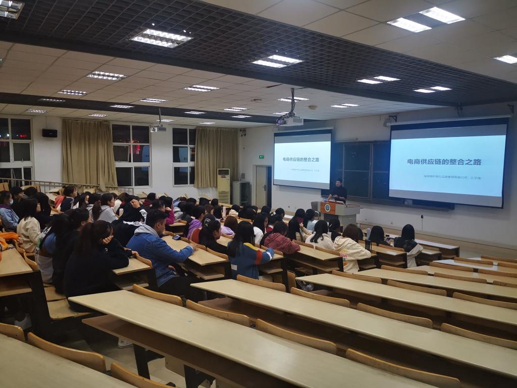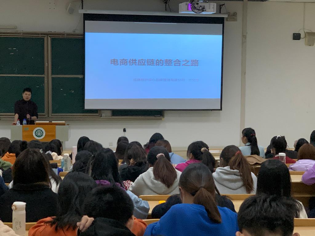 2020年12月7日,外语系商贸教研室邀请到了福建植护倾心品牌管理有限公司总经理兰文雄先生为同学开展了主题为“电商供应链整合之路”的三创讲座。19级应用英语专业的全体同学参加了此次讲座。