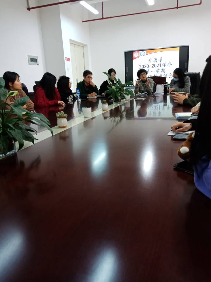 2020年12月2日下午,外语系何少娴主任主持在旗山校区第三会议室召开了外语系2020-2021第一学期期中评教座谈会,教师代表卢艳红副主任,应用英语教研室主任陈海燕老师,应用外语教研室林超老师参会,学生代表19级和20级各班学委参会。