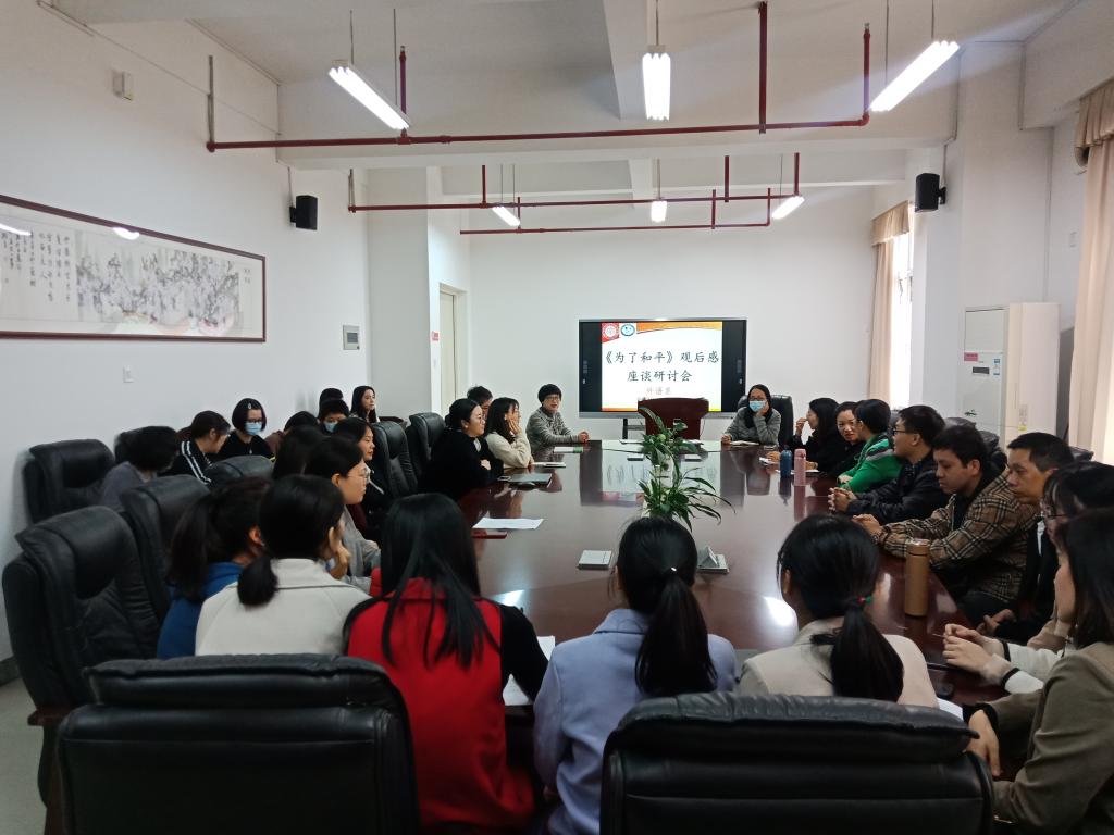 在会议的最后一个环节,何主任带领大家观看了《为了和平》系列纪录片,何少娴主任指出《为了和平》纪录片记录了中国共产党领导抗美援朝战争的光辉历程和宝贵经验,要求各位教职工认真观地把6集的影片观看完毕。其次,各位老师交流了各自观看的感想,纷纷表示通过观看影片深刻理解了并感受到了中国人民志愿军的英雄事迹和革命精神的洗礼。最后,何少娴主任强调,任何的观看和学习都要贯彻落实到行动中,各位教师一定要以自己的实际行动诠释新时代抗美援朝的精神。