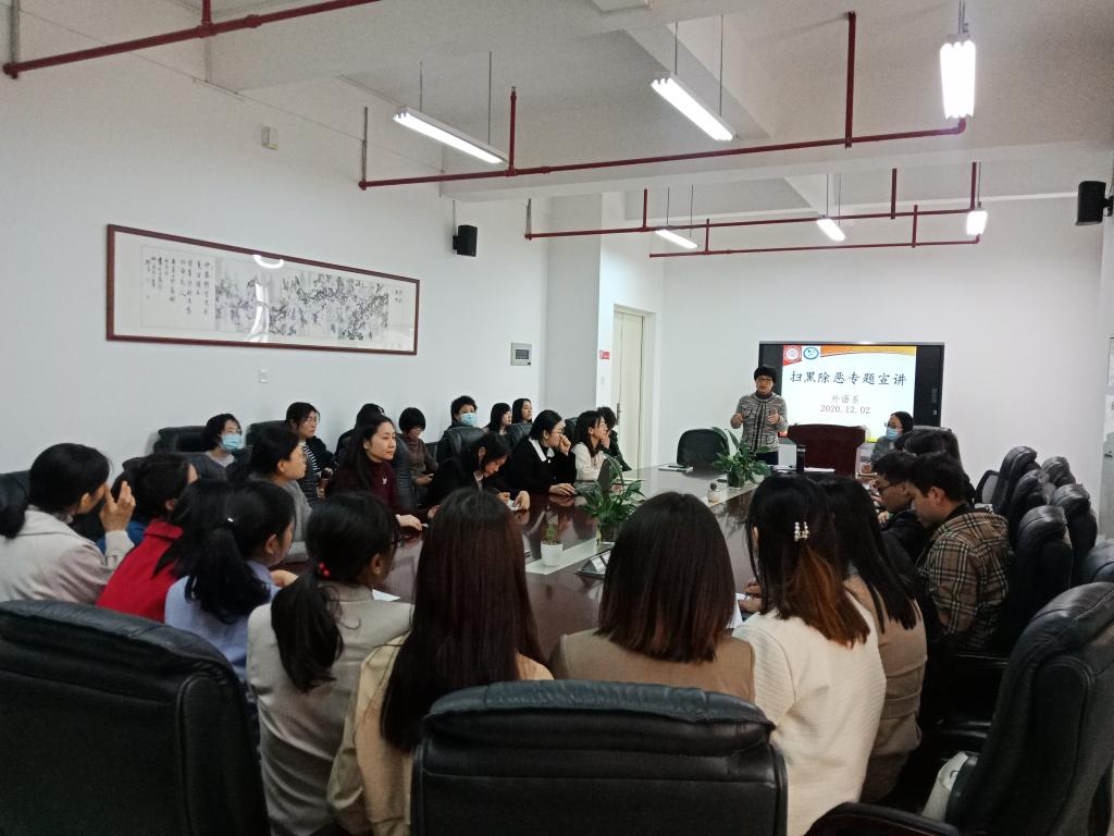在会议的第四个环节,何主任进行了扫黑除恶的专题宣讲。会议强调,各位老师要切实提高学生对扫黑除恶知识的认识,为开展扫黑除恶专项斗争奠定坚实的基础。