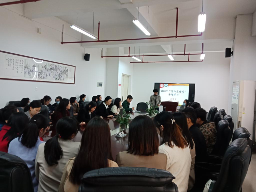 在会议的第二个环节,何主任带领老师们进行2020年“宪法宣传周”专题学习。会议强调会议强调,习近平法治思想内涵丰富、论述深刻、逻辑严密、系统完备。何主任鼓励老师们要认真学习宪法精神,把会议精神转化为做好各项工作的强大动力,转化为推进系部法治建设的思路举措,为全面建设社会主义法治国家的贡献自己的一份力。
