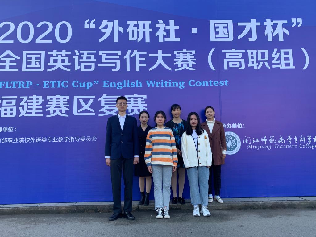 11月1日,2020年“外研社杯”全国高职高专英语写作大赛圆满落幕。外语系19级英语教育王彩虹同学在陈虹老师的指导下,荣获专业组特等奖,并将代表福建省参加2020“外研社·国才杯”全国英语写作大赛(高职组)全国总决赛。由陶婷婷、程妍老师分别指导的18级马来班的罗素敏和19级初教全科陈丹乐同学均获得该赛事公共组的三等奖。
