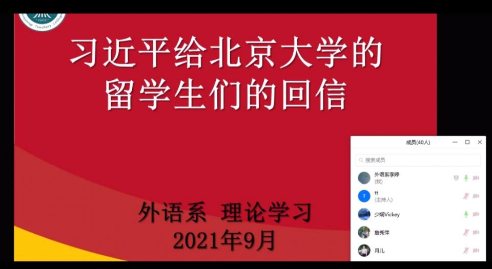 2021年9月29日,外语系召开线上会议,外语系全体教职工参会。