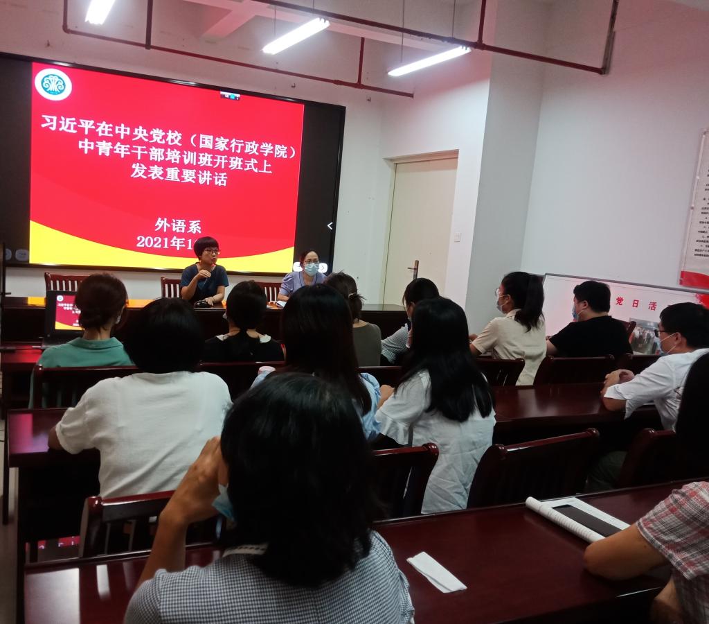 2021年10月6日,外语系何少娴主任在旗山校区党员活动室主持召开会议,外语系全体教职工参会。