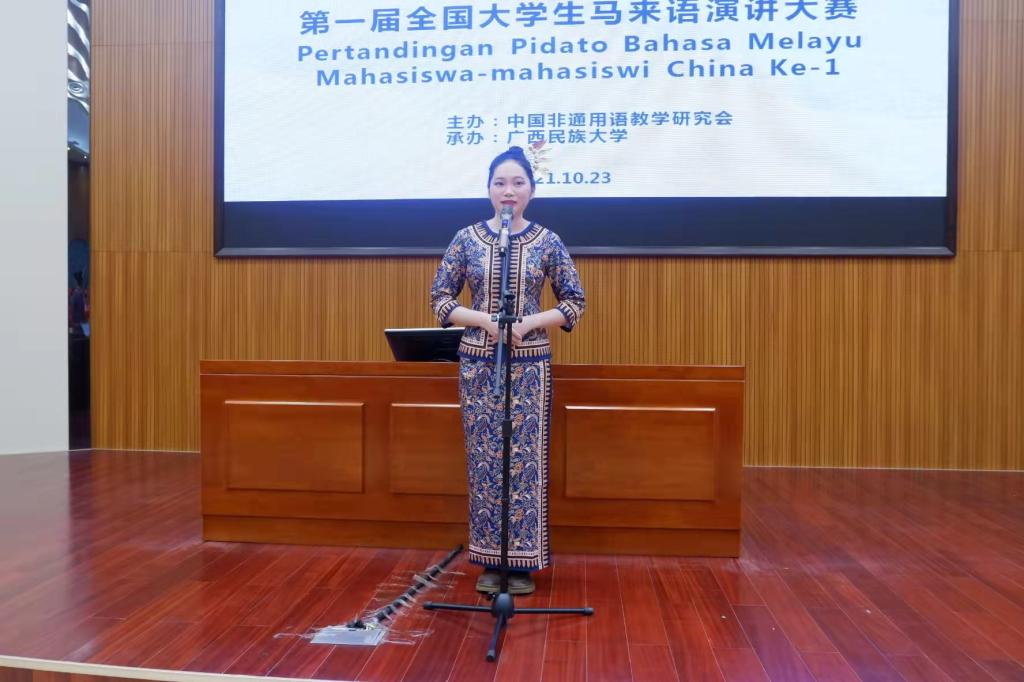 第一届“全国大学生马来语演讲大赛”由中国非通用语教学研究会主办,广西民族大学承办,是中国高校马来语专业首次的国家级专业性演讲比赛,受到各高校的重视。本次我系选手与来自北京外国语大学、信息工程大学洛阳校区、广东外语外贸大学、四川外国语大学、西安外国语大学、云南大学、云南民族大学、广西民族大学、海南外国语职业学院的马来语相关专业共23名选手同台竞技。