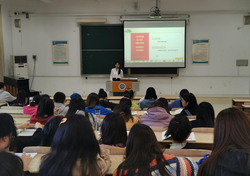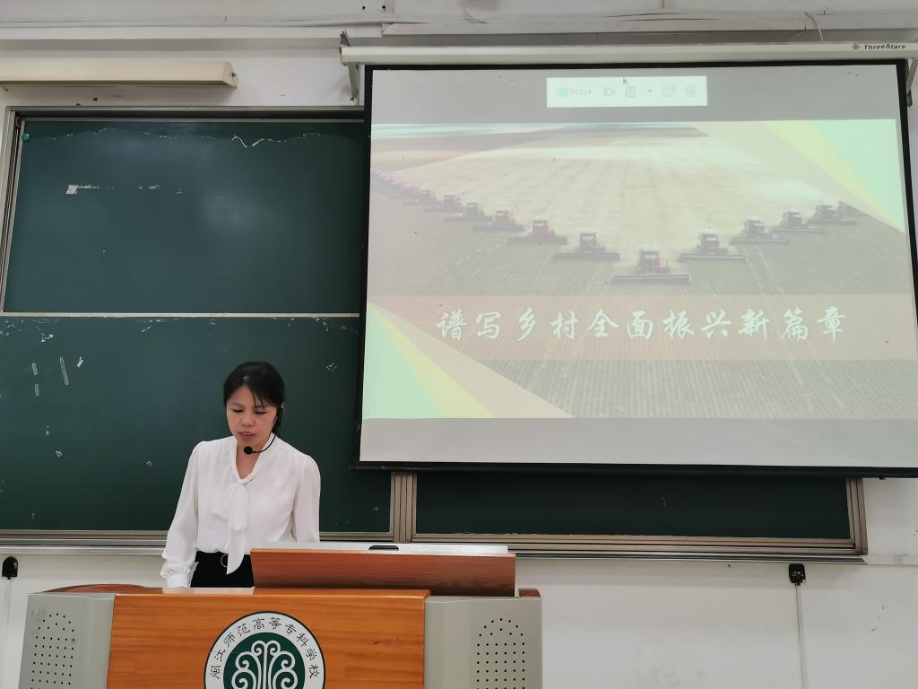 为了贯彻落实乡村振兴战略,提高同学们服务社会的意识,2021年11月10号下午,外语系党总支兰浈书记在1015教室为2020级国际贸易专业的同学上了一堂题为“谱写乡村全面振兴新篇章”的形势与政策课。