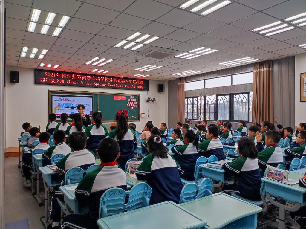 2021年12月24日上午,我系19级英语教育专业实习生潘杨一在仓山区教师进修学校附属第二小学进行了课题为The Spring Festival英语汇报课,20英语教育2班全体同学在外语系副主任陈颖老师的带领下前往观摩学习。