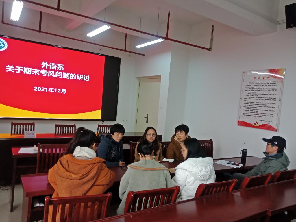 2021年12月28日上午,我系召开关于期末考风问题的研讨会,外语系何少娴主任、卢燕红副主任、陈颖副主任、专业主任以及相关老师出席会议。