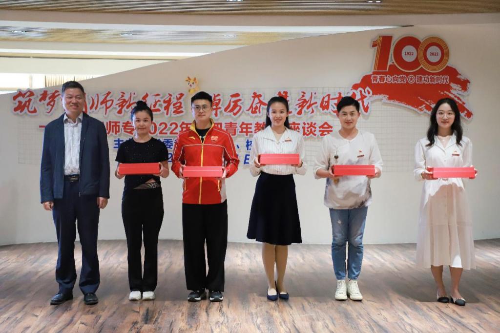 座谈会在青年教师技能(才艺)交流展示和青年教师代表发言中开场,通过节目展演和教师代表发言,展现新时代青年教师锐意进取、昂扬拼搏的五四精神。来自不同学院的青年教师以舞蹈、器乐表演、朗诵、歌唱等形式展示教学技能和个人才艺。9位青年教师代表分享了自身学习成长经历,谈感悟、谈责任、谈成长、谈收获,为学校高质量发展建言献策。校党委书记陈荣生、校长杨建义为参与表演和发言的教师颁赠纪念品,陈荣生书记代表校党委讲话,要求大家要传承和弘扬“五四精神”,并就青年担当和教师责任,作出“学校的未来属于青年教师,学校的发展寄予青年教师”的深情勉励。他表示,学校将一如既往大力支持和关心青年教师的成长,希望每一位青年教师都书写出不悔的青春篇章。