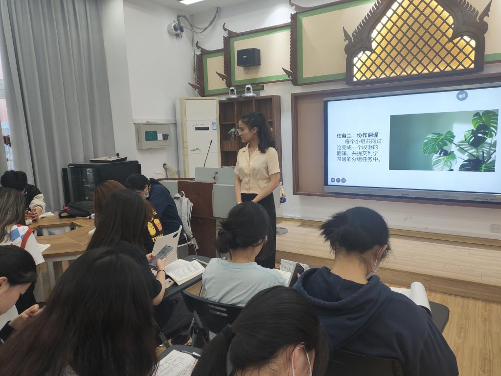 王心宜老师以《基础马来语》第15课的“马来西亚的节日”为授课内容进行公开课教学。授课对象是21级应用外语(马来语方向)。王心宜老师精心设计授课方案,通过词汇速记、协同翻译、文章理解和语法突破几个任务点引入新知。在教学过程中,使用信息化教学手段,利用学习通开展课堂讨论,激发学生的积极性。整堂课学生听课认真、反应积极,教学流程清晰、教学目标明确。