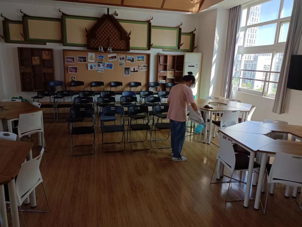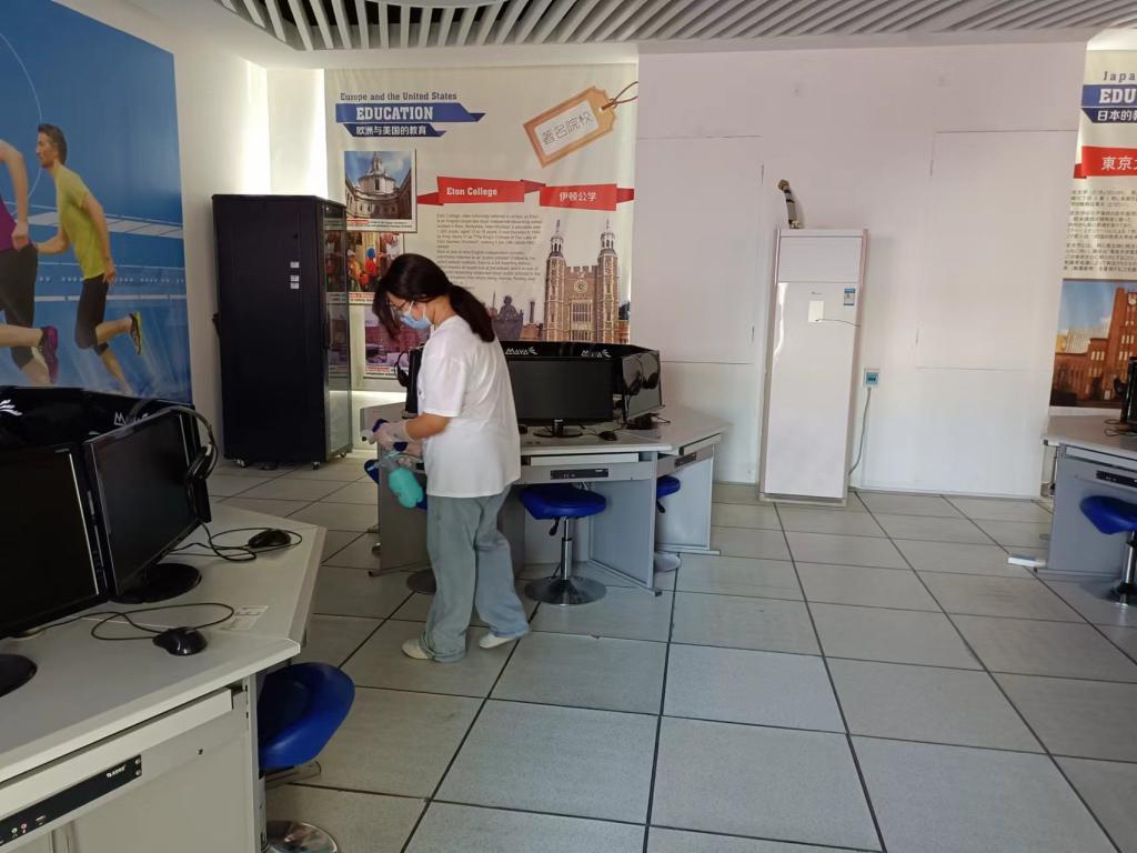 为应对当前我市突发新冠肺炎疫情,及时落实我校疫情防控领导小组针对疫情防控工作的新一轮部署,切实保障学院师生健康,10月24日下午两点开始,外语商贸学院对实训室开展了必要的消杀工作。