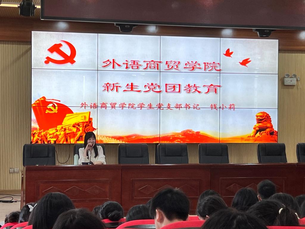 为了进一步丰富学校新生的党团知识,加强新生的政治思想意识,保持新生入党入团的积极性,2022年10月17日,外语商贸学院海口校区在信息技术楼四楼召开2022级新生“党团教育”主题讲座,讲座采取线上、线下相结合的形式开展。我院学生党支部书记钱小莉老师作为本次讲座的主讲人,新生辅导员龚俊浩老师、郑亦琅老师以及2022级全体新生参加此次讲座。