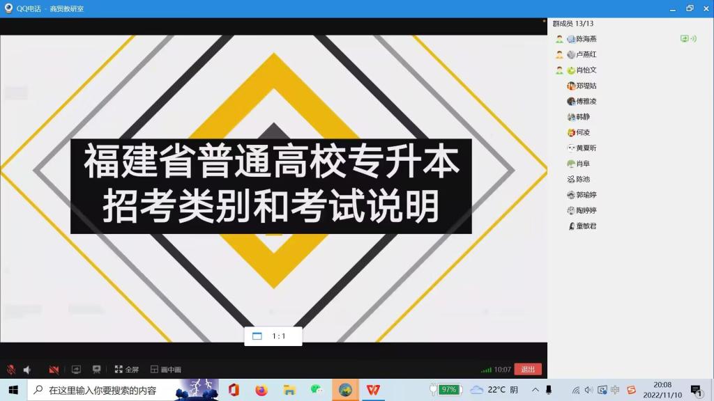 近日,福建省教育厅对福建省普通高校专升本考试招考类别和考试科目进行了调整,并公布《福建省普通高校专升本考试说明》。为适应专升本招考改革工作的要求,商贸教研室于11月10日召开2023年专升本考试说明会,会议由陈海燕老师主持。