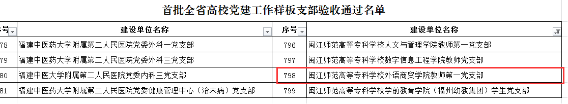 近日,中共福建省委教育工委公布首批全省高校党建工作标杆院系、样板支部验收通过名单,外语商贸学院教师第一党支部顺利通过了“首批全省党建工作样板支部”验收。