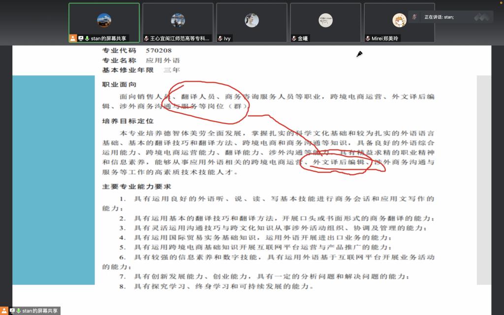 会上,教师们认真学习了《职业教育专业简介(2022年修订)》文件内容,并对当前专业人才培养方案亟需改进优化的地方进行交流,对于如何提高课程安排的合理性和专业课的商务特色提出建议。通过本次职业教育专业标准的学习与研讨,应用外语教研室后期将全面修(制)订相应专业的人才培养方案,对标和逐步接近职业教育标准,优化培养目标、拓展能力要求、更新课程体系,落实实习实训,加快专业升级,更好地服务地区经济产业发展。
