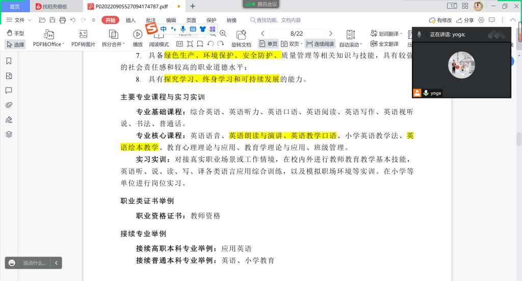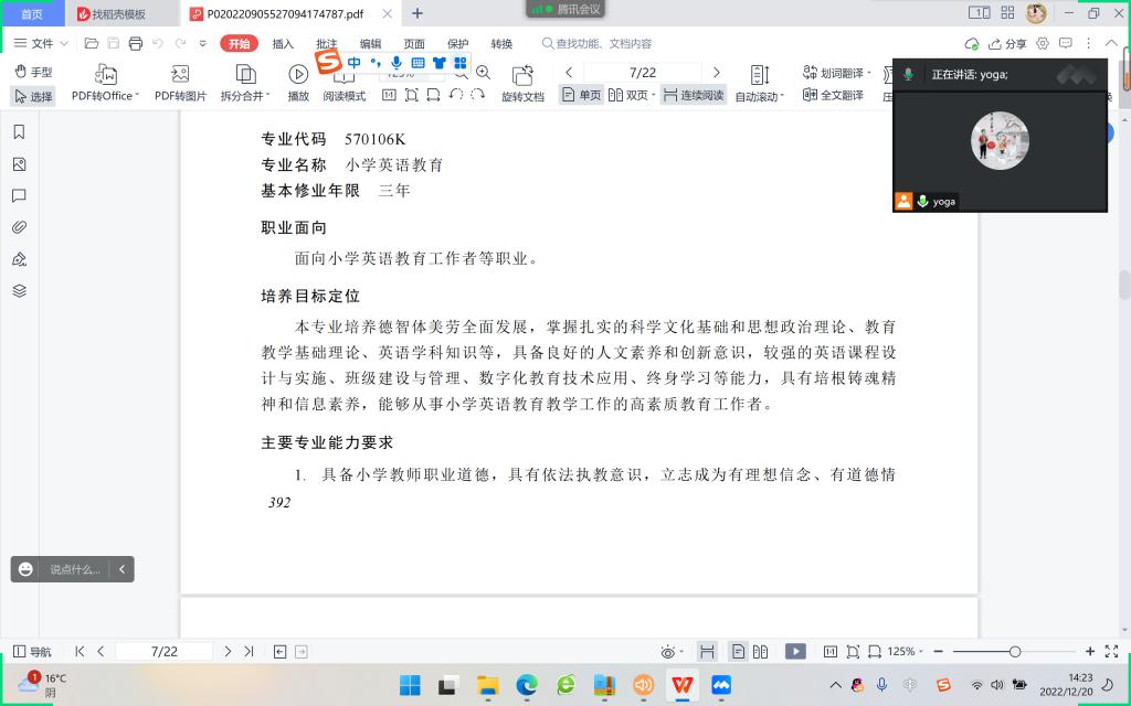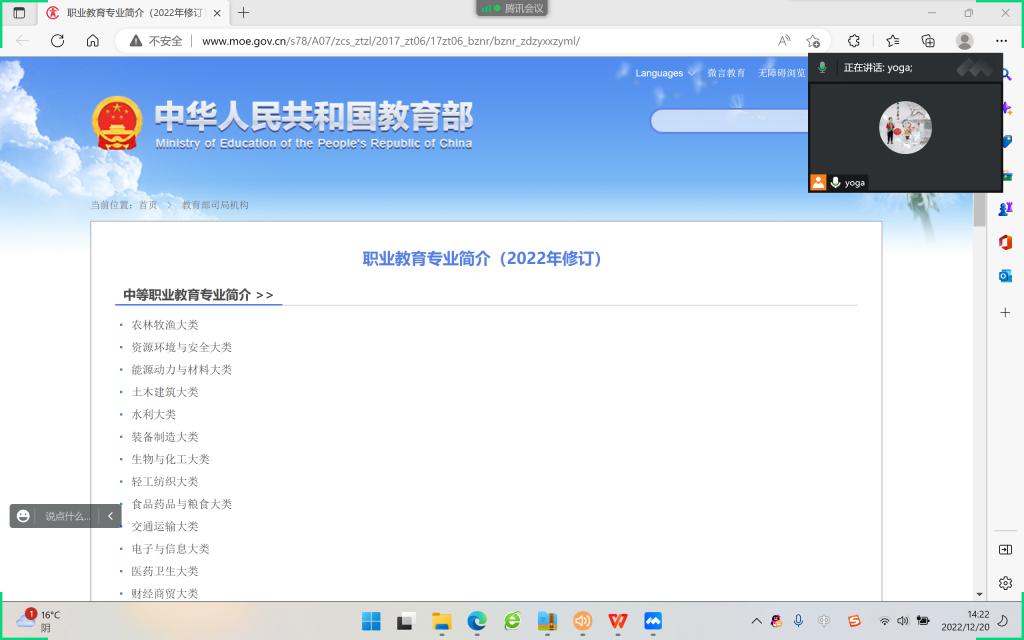为认真学习研讨《职业教育专业简介》(以下简称《简介》),全面修(制)订相应专业的人才培养方案,优化培养目标、拓展能力要求、更新课程体系,落实实习实训,加快专业升级,更好服务产业发展,英语教育教研室于2022年12月20日下午2点半,通过腾讯会议线上召开了专门的教研学习会议。