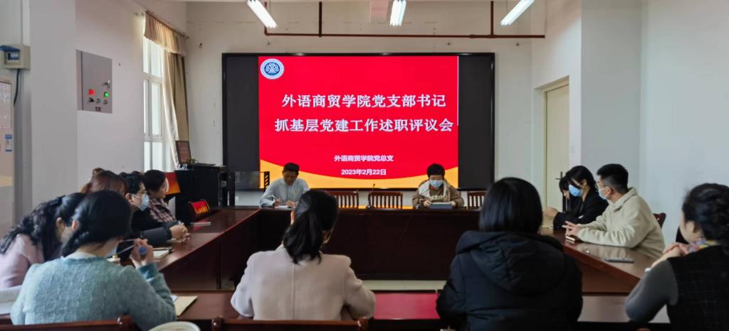 2月22日下午,外语商贸学院党总支在旗山党员活动室举行2022年度党支部书记抓基层党建工作述职评议会议。学院党总支书记、总支委员、支部委员,以及学生和教师党员代表参加了评议会。