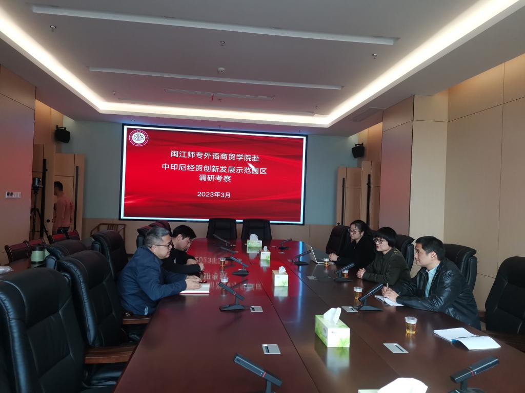为深入落实教育部和省委教育工委、省教育厅关于访企拓岗促就业专项行动的工作部署,进一步深入了解行业发展动态,推动我校产教融合,拓宽就业信息渠道,3月17日上午,外语商贸学院党总支书记林冉、院长何少娴、副院长陈海燕及应用外语教研室主任林超一行赴中印尼“两国双园”访企拓岗促就业开展“访企拓岗”行动。此次来访受到了中印尼“两国双园”管委会领导的热情接待。