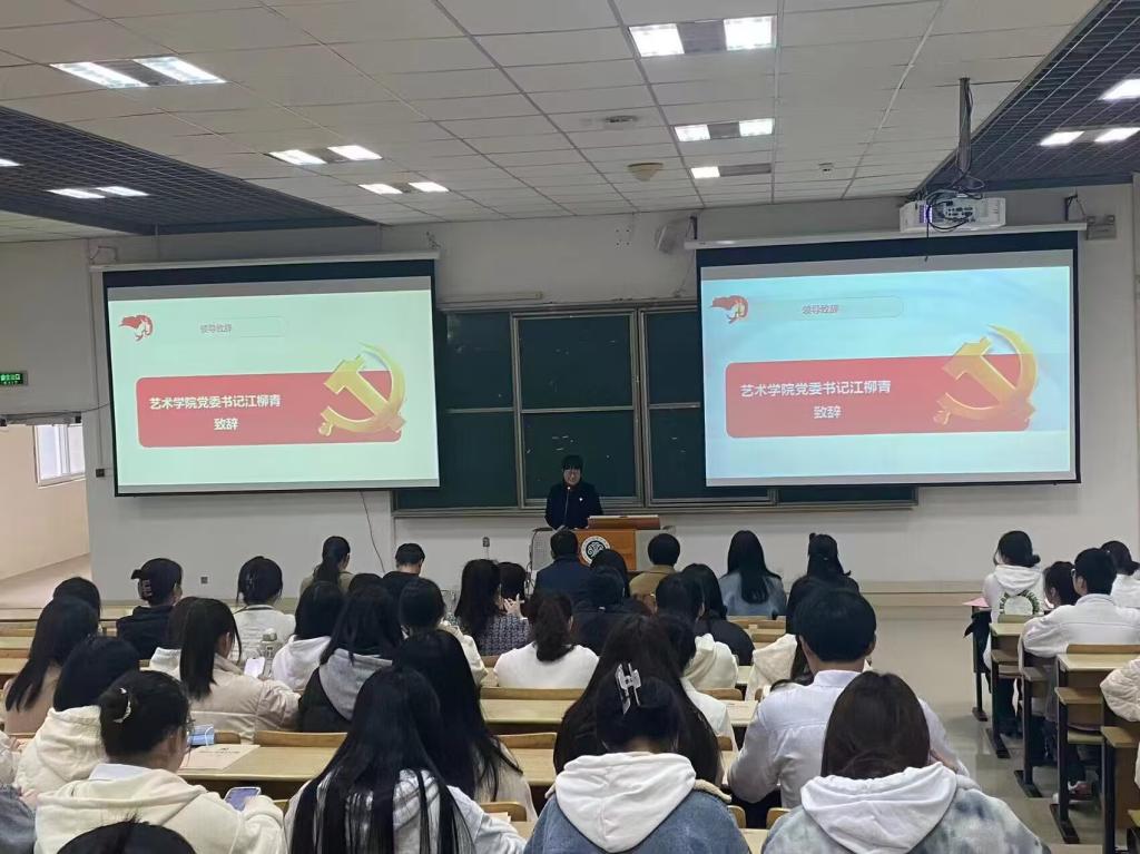 全体参会人员齐唱《国际歌》之后,由艺术学院党委书记江柳青同志为本次开班仪式致辞。她强调,入党积极分子培训是学员们入党的必经之路,鼓励学员们以本次学习为契机,树立终身学习理念,严格按照党员标准要求自己,在学习和生活中发挥先锋模范作用,争做有理想、敢担当、能吃苦、肯奋斗的时代好青年,争取早日在思想、行动和组织上入党。她预祝本期培训班取得圆满成功!