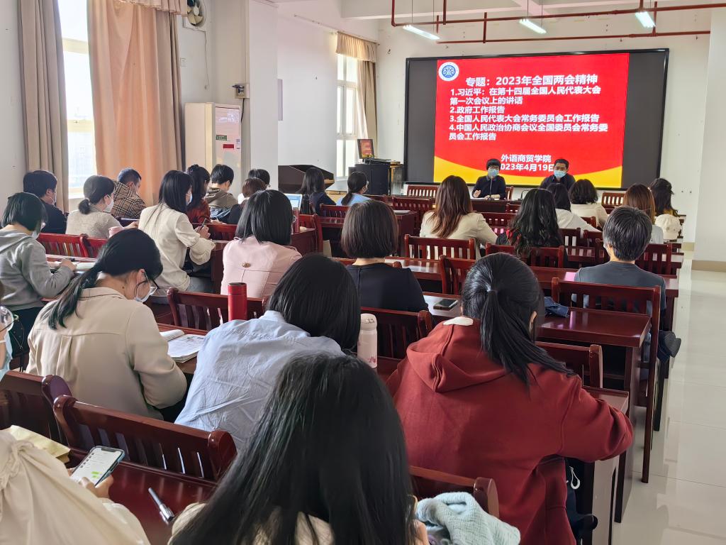 4月19日下午,外语商贸学院在旗山校区党员活动室召开学院专题学习,党总支书记林冉、院长何少娴、副院长陈海燕及全院教职工参会。会议由林冉书记主持。