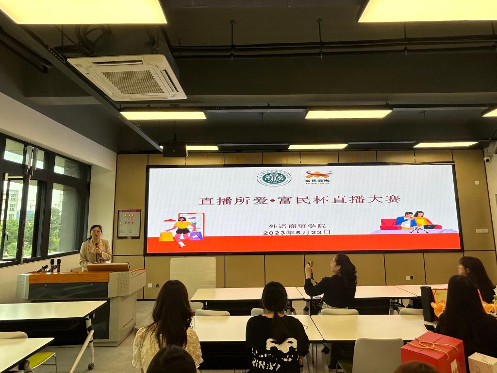 5月23日下午,外语商贸学院商贸教研室于现代商贸实训中心开展“直播所爱·富民杯直播大赛”。本次竞赛依托富民云咖科技信息有限公司,在富民直播平台开展直播实战比赛。比赛面向我院应用英语、应用外语、跨境电子商务电商、国际经济与贸易共计4个专业全体同学。报名选手2-5人为一组,需完成策划、选品、场控、直播、数据分析等直播带货各环节。
