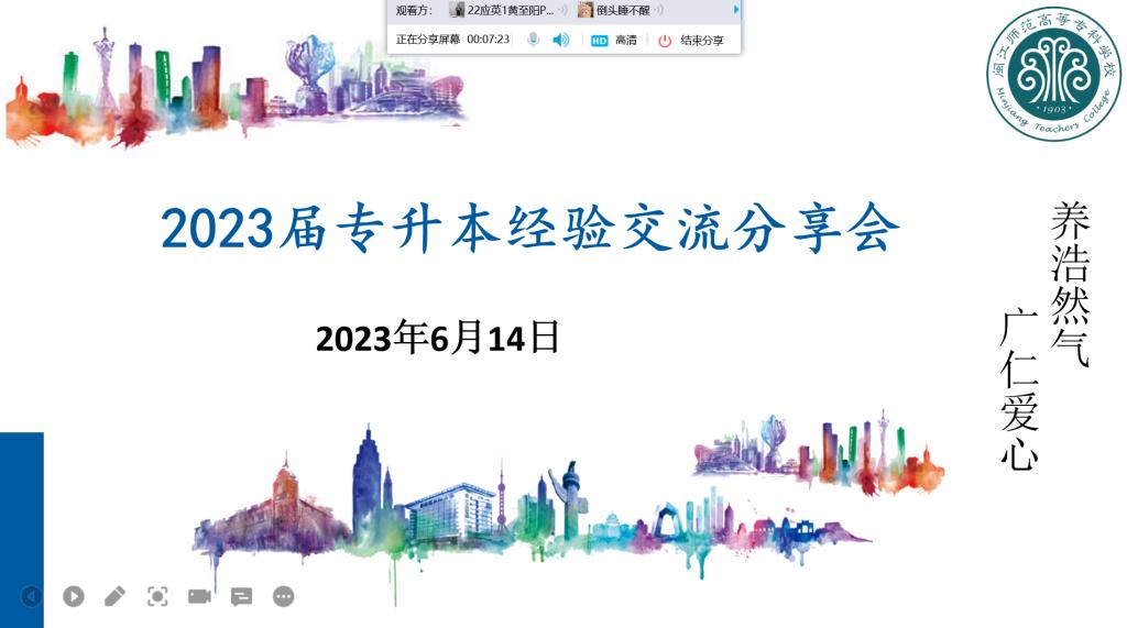 为了让同学们提前做好升学规划,帮助学生更加充分地应战专升本考试。6月14日,我院邀请在2023年专升本考试中获得优异成绩的陈俊远、杨玉萍、李鑫和方文杉四位同学分享备考经验。学院共有180余名同学参会,会议由詹秀萍老师主持。
