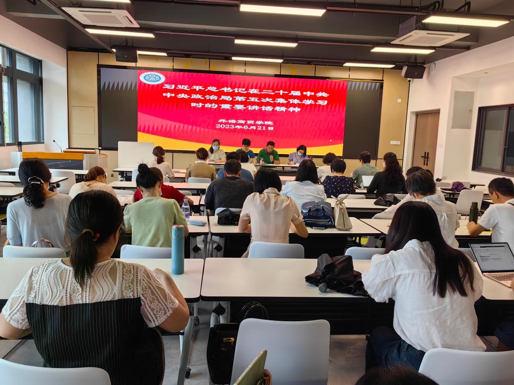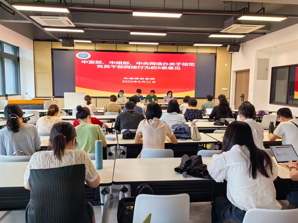 6月21日下午,外语商贸学院在新实训楼3楼多功能报告厅召开学院例会,党总支书记林冉、院长何少娴、副书记卢燕红、副院长陈海燕、综合科科长刘诗雨及全院教职工参会。会议由何少娴院长主持。