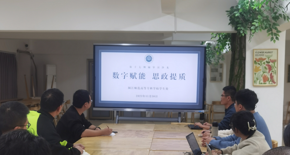 为进一步加强辅导员队伍建设,运用数字化思维理念和技术工具,逐步优化辅导员工作方式方法,实现学生工作从“治”理到“智”理的转变。11月30日,由我校学生处主办,外语商贸学院“匠心筑梦”辅导员工作室承办的第17期辅导员沙龙——“数字赋能,思政提质”在福清校区学生社区举办,主讲人为医护学院辅导员翁剑明。本次活动由学生处副处长陈胜主持,福清校区全体辅导员共同参与。