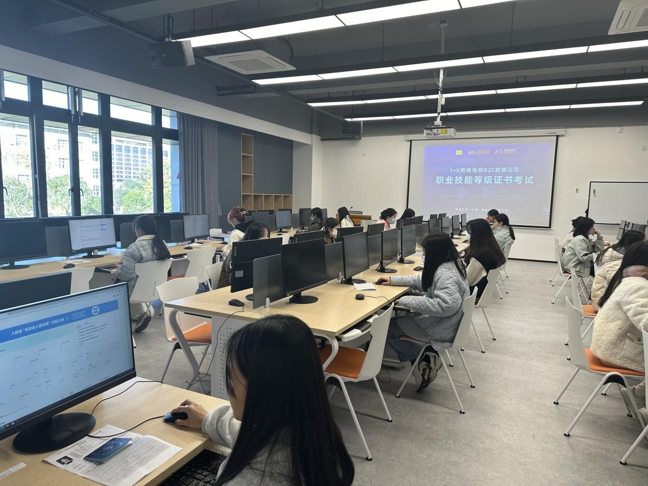 为深化职业教育改革,提高人才培养质量,全面贯彻《关于在院校实施“学历证书+若干职业技能等级证书”制度试点方案》文件精神,推进跨境电商专业群“岗课赛证”融通建设,外语商贸学院于2023年6月18日及12月22日,顺利完成两场1+X跨境电商B2C数据运营(中级)职业技能等级证书考核工作。来自2021级应用英语专业及跨境电子商务专业的共53名学生参加了考核,两场考核通过率均为100%,成绩喜人。
