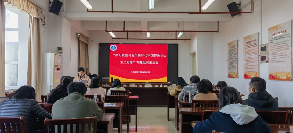 2024年1月3日下午2点10分,外语商贸学院教师支部在综合楼8楼党员会议室召开以“学习贯彻习近平新时代中国特色社会主义思想”为主题的专题组织生活会,会议由支部书记陈颖同志主持。