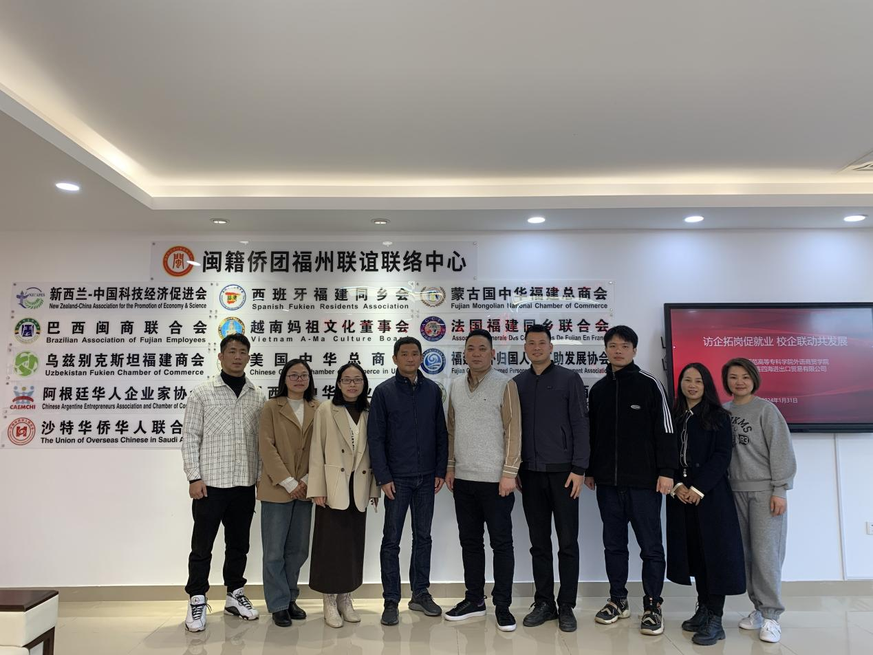 为深入贯彻落实2024届全国、全省普通高校毕业生就业创业工作视频会议精神,促进毕业生高质量就业,深化校企合作,2024年1月31日,外语商贸学院党总支书记林冉带队,副书记卢燕红,商贸教研室主任郑堤姑,赴福建福连四海贸易进出口有限公司进行实地走访。