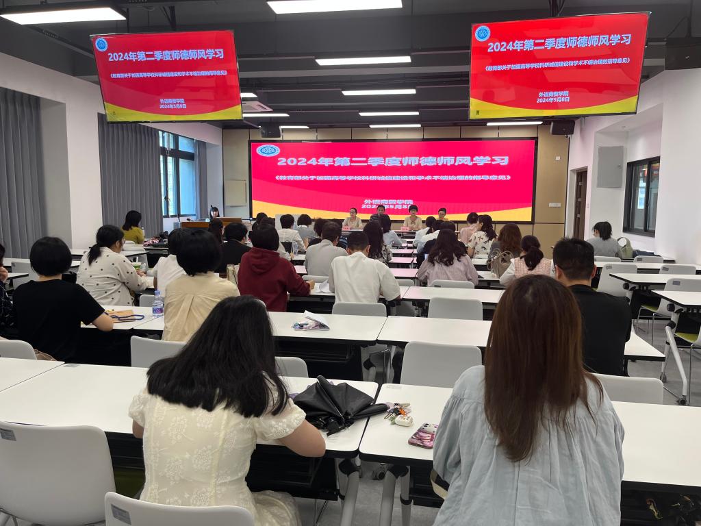5月8日下午,外语商贸学院在产创楼307召开师德师风第二季度专题学习会,党总支书记林冉、院长何少娴、副书记卢燕红、副院长陈海燕及全院教职工参会。