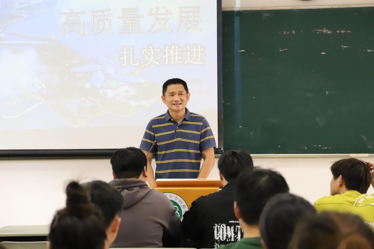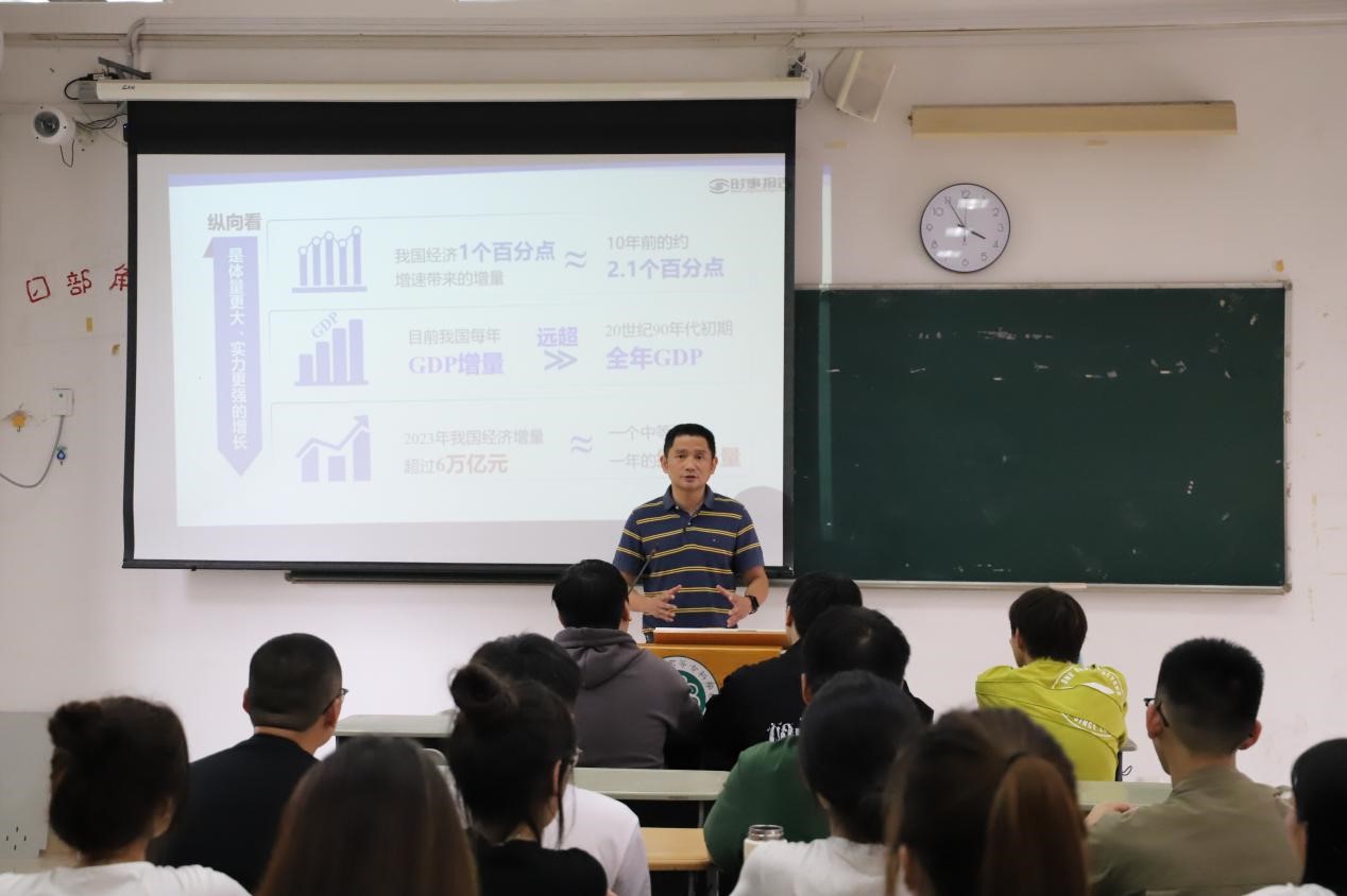 林冉书记以生动的语言和鲜活的案例,从“回升向好韧性强,全面长远辩证看,多措并举提质量”三个方面展开,向同学们展示了中国经济高质量发展的壮丽画卷。他深入分析了当前我国经济发展的态势,要求同学们要辩证地看待我国经济发展面临的机遇和挑战,并宣讲了我国在经济高质量发展方面采取的政策措施,引导青年学生在经济高质量发展中担当作为。