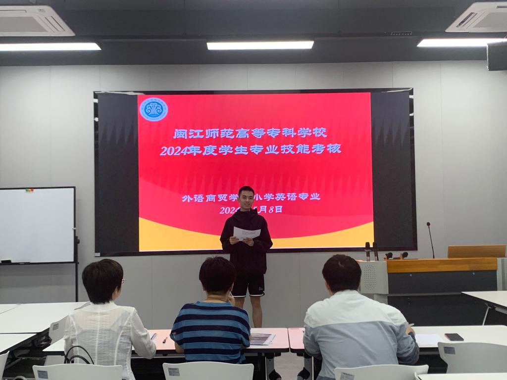 为全面落实教育部《小学教师专业标准(试行)》、《小学教育专业认证标准》、《小学教育专业师范生教师职业能力标准(试行)》、《义务教育英语课程标准(2022年版)》等文件精神要求,围绕高等职业教育的职业能力培养的目标,以提升学生的职业能力和提高学生的职业素质为核心,促进小学英语教育专业的发展,以考核促教学,以考核促学习,以考核促教研,全面了解学生对各项基本技能掌握的情况,检验小学英语教育专业技能和培养质量。2024年5月8日下午,外语商贸学院英语教育教研室在产创楼E301、E302、E309开展小学英语教育专业技能抽查考核。院长何少娴担任评委会组长,面试组由小学英语教育教研室主任尤佳及骨干教师组成。
