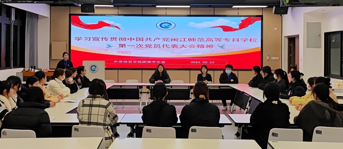 2025年2月23日,外语商贸学院学生党支部联合团委学生会在旗山校区学生社区学习宣传贯彻我校第一次党员代表大会精神,外语商贸学院学生党支部党员、团委学生会学生干部参加会议,会议由学生党支部书记、团委学生会指导老师练栅栅主持。