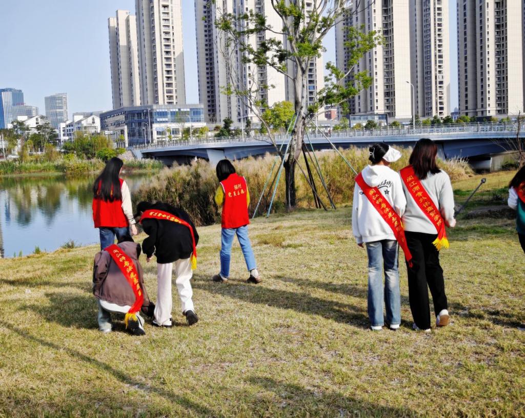 4月2日14:00,外语商贸学院学生党支部联合院团委学生会在旗山湖公园开展“绿色生态你我共创”志愿服务活动,党支部党员及团委学生会学生干部参加。