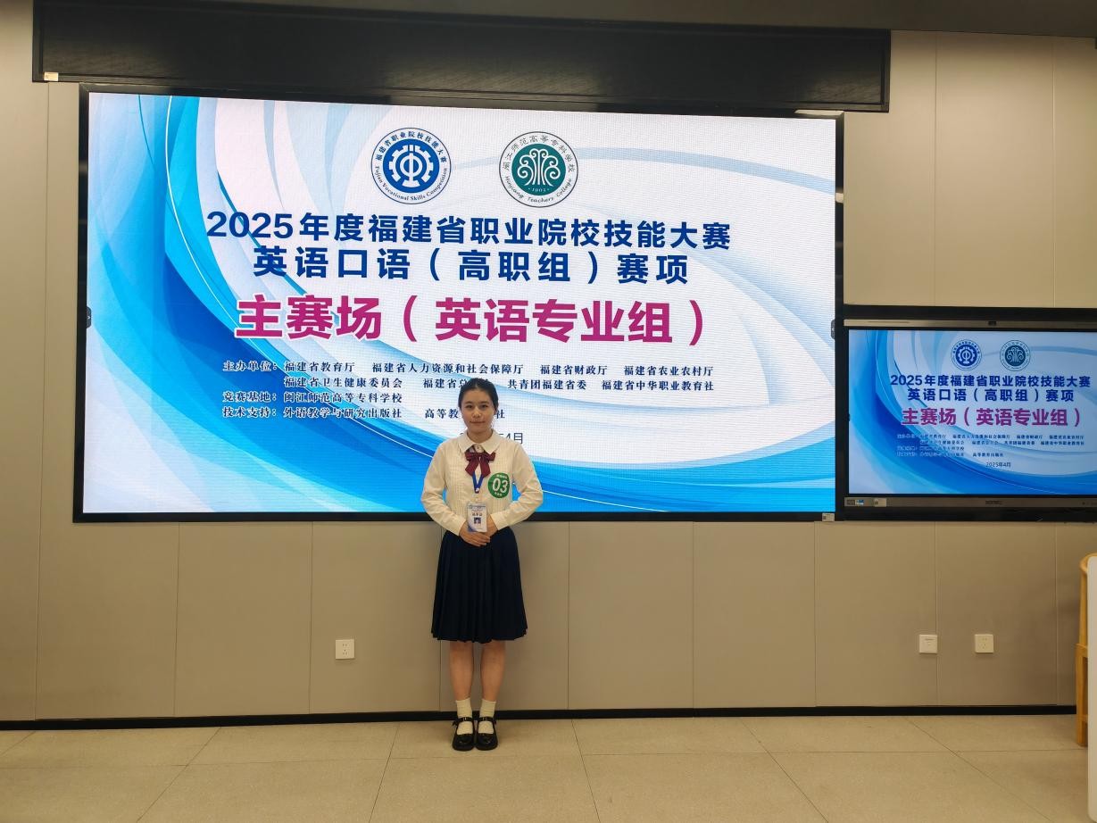 2025年4月11日至13日,由福建省教育厅主办的2025年度福建省职业院校技能大赛“英语口语”赛项在我校外语商贸学院成功举办。经过为期两天的激烈角逐,外语商贸学院林超老师指导的23级应用英语专业郑真同学荣获专业组一等奖,程妍老师指导的23级马来语专业张雯婷同学斩获非专业组一等奖,延续了我校在该赛项的优异表现。